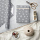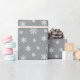 Modern vector pattern of white snowflakes on grey solid background. Festive winter themed design wrapping paper for your holiday gift giving.