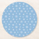 Festive coasters that feature a modern white snowflakes vector pattern on baby blue background.