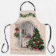 Holiday apron with a vintage image of the Christmas tree in front of a window at night with candle lights glowing and the words, "The Magic of Christmas."