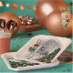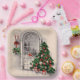 Christmas paper plates with a vintage picture of a Christmas tree by a window at nighttime with candle lights glowing.