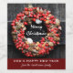 Christmas Wine Bottle Label Set. This set of wine labels is the perfect way to personalise a traditional winter holiday gift. The design features a Christmas wreath on a wooden gate background. Customise the label with your name.