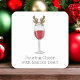 Christmas Wine Pouring Cheer with Santa's Deer Square Paper Coaster