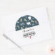 Soap or candle sticker personalised with your details and scent name. A whimsical festive pattern. Polar bears, reindeers, trees. foxes, and snowflakes. On a dark green background.