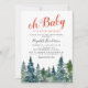 Winter baby shower invitations featuring watercolor christmas trees, snowflakes and a personalised "oh baby, it's cold outside" template.
