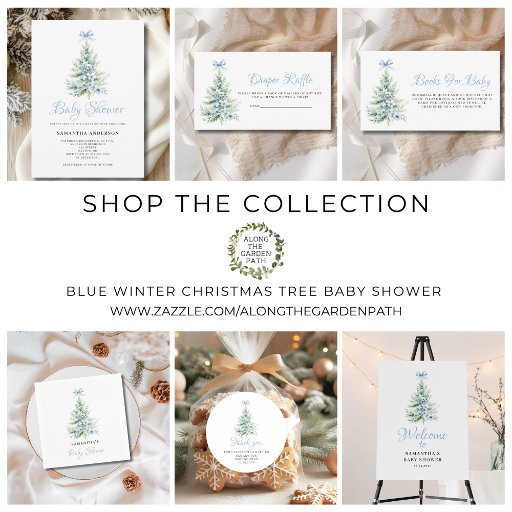 Celebrate a joyful winter baby shower with this elegant and charming invitation. Featuring a soft watercolor Christmas tree adorned with delicate blue flowers and a coordinating blue bow, this design is perfect for welcoming a baby boy. The sophisticated script “Baby Shower” text pairs beautifully with clean, easy-to-read event details, making it both stylish and practical. Fully customisable, you can add the honoree’s name, date, time, location, RSVP information, and registry details to create a personalised keepsake. Ideal for winter-themed celebrations, holiday baby showers, or a festive December gathering.