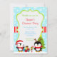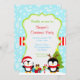 This Penguin Christmas party Invitation features a cute Penguin family in a winter scene with them standing beside a Christmas tree. (33)