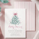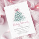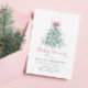 Celebrate the arrival of your little girl with this charming winter-themed baby shower invitation. Featuring a teal Christmas tree adorned with a delicate blush pink bow and surrounded by pastel snowflakes, this elegant design blends festive charm with a soft, coquette touch. Perfect for creating a memorable winter baby shower with a whimsical, yet sophisticated, feel.