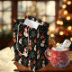 Christmas and winter holiday snowman, poinsettias and pine and berries floral pattern on a black background.