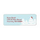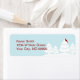 These elegant and pretty winter return address labels have a snowy tree scene with a bright red cardinal on an aqua blue background.