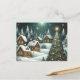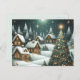 Christmas winter scene village & starry night. Postcard. Christmas postcard.