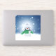 Christmas winter snowman SlipperyJoe green scarf mittens gloves rosy cheeks grey fur hat sparkles snowflakes background gay pride gifts LGBTQIA artistic adorable festive wintery feel