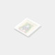 Sticky notes with a whimsical watercolor painting. A young child in pyjamas and her pet kitty cat looking outside their window on Christmas Eve. Santa Claus and his reindeer flying across the night sky in silhouette form with a big full moon illuminating their path. Faded look to the image so you can easily write over top.