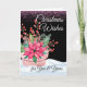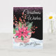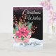 Customise the text on the cover of this Christmas greeting card with a floral and greens arrangement in pink and green tones. Pink poinsettia, pink berries, pink snow, and greens add to this floral nighttime design. Art, image, and verse copyright © Shoaff Ballanger Studios, 2023.