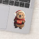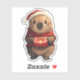 A wombat dressed for Christmas in a scarf and hat holds a present as it snows.