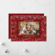 Spread joy and warmth this holiday season with this whimsical family photo Christmas card featuring a vibrant red Scandinavian-inspired border of reindeer and other forest animals. The charming folk art pattern adds a playful touch to your family photo, capturing the cosy magic of Christmas traditions.