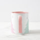 This ceramic coffee mug is shown in a refreshing image of woodlands fir tree print. Snowflakes grace the mug cascading down from the rim.