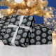 Christmas wrapping paper shown in black with a cute snowflakes print in a hint of ice blue. Customise this item or buy as is.