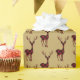 Wrapping paper shown in a festive Christmas holiday buffalo print deer print over a matte gold-coloured background. No gold foil or gold or gold metallic paper-just gold-coloured. Glossy paper shown.