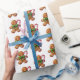 Wrapping paper is shown in a cute gingerbread man print.
