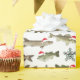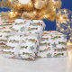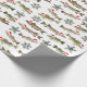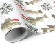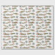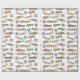 Christmas wrapping paper, fish, fisherman. Designed for presents that are gift wrapped for the outdoor sportsman in your life. A fisherman dreams of the next big catch. A design created for those who love fishing. Illustration featuring fish wearing Santa Hats and camouflage snowflakes.