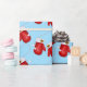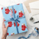 Holiday gift wrapping paper shown with a cute Christmas mittens print on a blue color background.