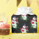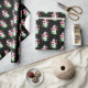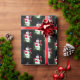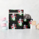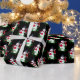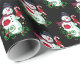 Holiday gift wrapping paper shown with a festive Christmas snowman print on a black background.
