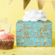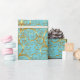 Holiday gift wrapping paper shown with a fancy pretty Golden swirls print on a Robbins Egg Blue background colour. Choose your background colour.