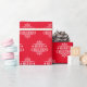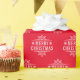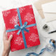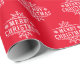 Holiday gift wrapping paper shown in a red background colour with a festive Merry Christmas snowflake print.