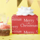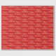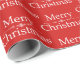 Holiday gift wrapping paper shown in a red background colour with a festive Merry Christmas print. Choose your background colour.