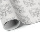 Holiday gift wrapping paper shown with a fancy partridge in a pear tree print in a silver colour on a silver background colour.