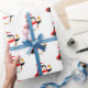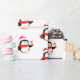 Wrapping paper shown in a cute festive Christmas penguin print. Matte paper shown