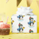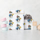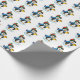 This Christmas wrapping paper is shown with a cute holiday penguin print.