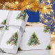 This Christmas wrapping paper features a lovely watercolor illustration of a pine tree, that has simple and elegant red decorations. It creates a modern, minimalist pattern in a minimalist white background.