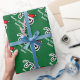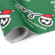 Merry Christmas wrapping paper with Santa hat soccer ball. Cute Holiday design for soccer players and fans. Funny Xmas gift wrap for men, women and kids (boys and girls). Personalizable with custom name and greeting. Green and red colours. Background colour is customisable.