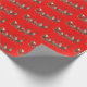 This Christmas wrapping paper is shown with a cute holiday Santa and reindeer print.