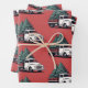 Festive Christmas present wrapping paper sheets featuring a vintage-inspired Christmas tree delivery truck graphic pattern. Designed on a red background, this stylish retro gift wrap combines nostalgic charm with a modern minimalist layout. Perfect for wrapping holiday gifts and packages, this fun and classic design adds personality to your wrapping while spreading festive joy. A timeless Christmas paper ideal for families, small businesses, or seasonal gifting.