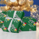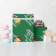 Merry Christmas wrapping paper with Santa hat softball ball. Cute Holiday design for players and fans. Funny Xmas gift wrap for men, women and kids (boys and girls). Personalizable with custom name and greeting. Green and red colours. Background colour is customisable.