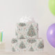 This colourful Christmas wrapping paper features beautifully decorated evergreen trees adorned with ornaments, flowers, and holiday decorations, perfect for spirited gift-giving.