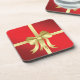 Coaster bears an image of a Christmas present wrapped in red holiday paper and tied with a big elegant golden bow. Do not open till Christmas! Enjoy.