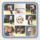 Christmas wreath and photo collage with nine photos and dusty blue border paper coaster. Change images with your family photos and make your own photo collage. All photos except two are of Photography © Storytree Studios, Stanford, CA