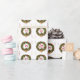 Monogrammed Christmas wrapping paper with the images of green holly leaves, red berries, gold bells and pine twigs. You can change the text inside the wreaths.