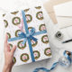 Christmas Wreath Bells Holly Pine Monogram Wrapping Paper
