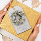 Beautiful gift tags feature a beautiful snow-flocked pine wreath decorated with white and gold Christmas tree ornaments and flowers with a greeting and your name or company name. MATCHING items in our collection.
