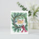 Christmas Wreath Cat, Sumi-e Holiday Postcard