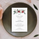 This simple and elegant holiday wedding menu card features stylish, watercolor bouquets made up of modern greenery and red and white Christmas flowers on a white background. These menus also work perfectly for any holiday party.