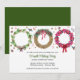 Invite friends and family to craft Christmas wreaths together. Three different holiday wreaths are displayed with a variety of objects used in the craft scattered next to them. Change the solid colour on the back to any of your choice or add additional images/text. Perfect for your crafty Christmas! Available with matching products.