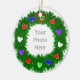 A pretty Christmas photo ornament with with my design of a Christmas wreath decorated with red, purple, white, blue, green and white hearts.