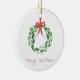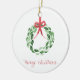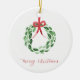 A classic Christmas wreath is the perfect accent to any gift or tree. This ornament features my original watercolor and calligraphy designs.