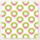 Deck the halls with this cheerful Christmas wreath pattern, featuring scalloped green wreaths adorned with bright pink bows and red ornaments, all set against a crisp white background. The symmetrical layout and bold colour palette give this design a modern twist on classic holiday charm.