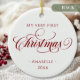 Christmas Wreath Photo Ornament featuring your favourite photo in the centre surrounded by a traditional Christmas Wreath with greenery and berries on a deep red background. The back has the same deep red with gold text. A beautiful "swirly" Christmas script together with your customisable text gives an elegant and classic impression. This will be a cherished keepsake for years to come for the festive season - you design it and adapt for a newborn, children, pet or a family portrait ornament.